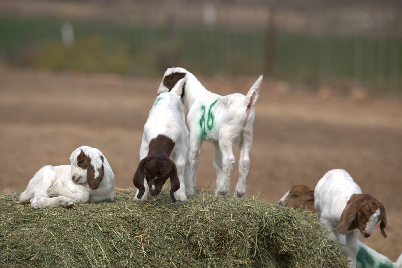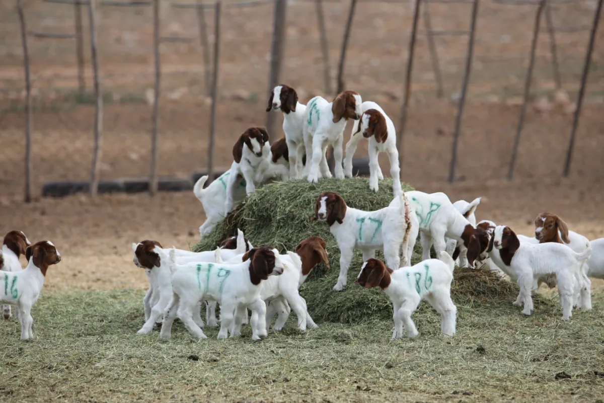 At Roos Boerderye, we proudly breed Boer goats, renowned worldwide for their strength, adaptability, and premium meat production. Bred in South Africa and perfectly suited to our environment, these goats thrive on natural veld grazing and are managed with care to ensure healthy, resilient herds. Our Boer goats are bred on Baviaans and Kromkloof farms, where ideal conditions and attentive management support robust growth and sustainability.