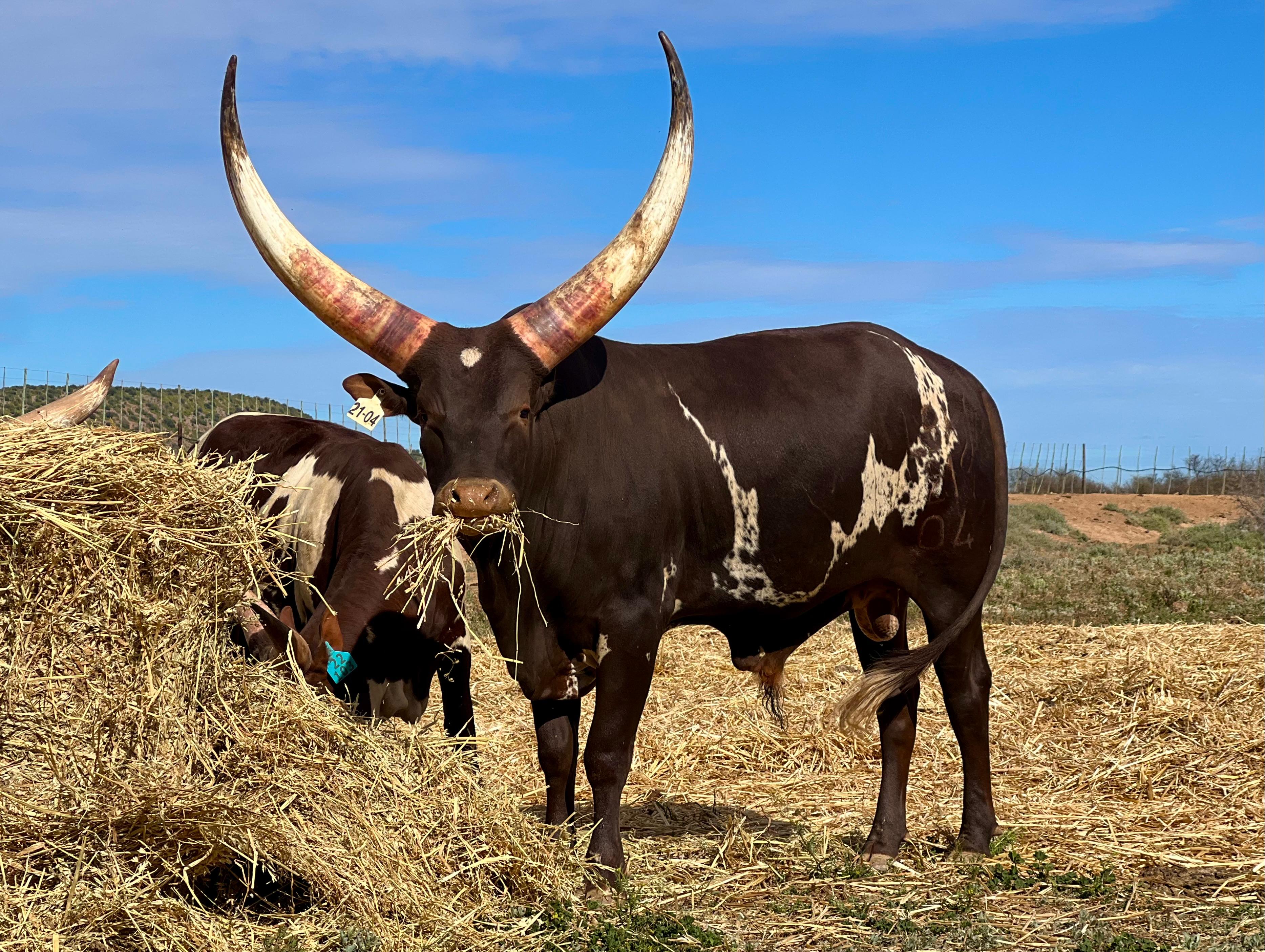 Our Ankole stud is based primarily on Baviaans Farm, where these distinctive, long-horned cattle are managed for their exceptional hardiness and natural grazing efficiency. Carefully selected genetics ensure that the herd thrives in the challenging Klein Karoo environment while contributing premium-quality beef to both commercial and niche markets.